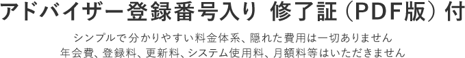当協会よりアドバイザー登録番号を記載した修了証(PDF版)を発行します